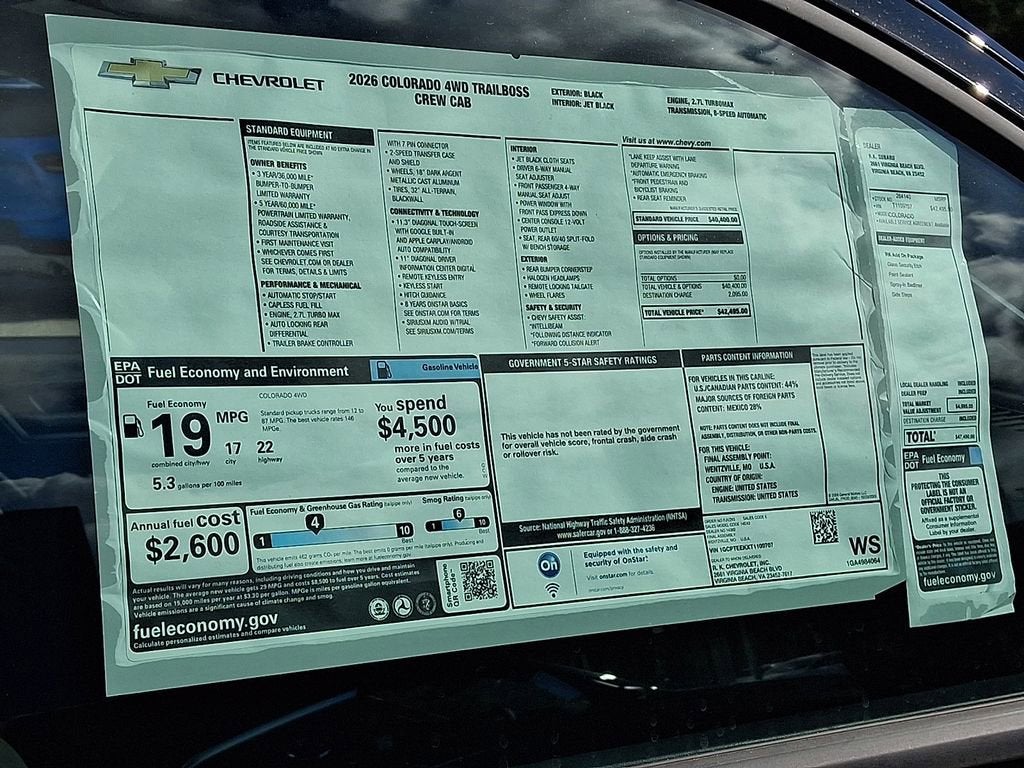 $2,998 off MSRP! Black 2026 Chevrolet Colorado Trail Boss 4WD 8-Speed Automatic 2.7L I4 Turbocharged DOHC 16V LEV3-ULEV50 310hp