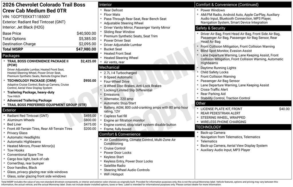 - Trail Boss Preferred Equipment Group includes standard equipment