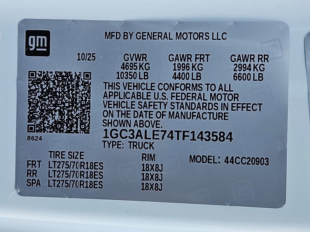 - 18" LT275/70R18 all-terrain, blackwall spare tire