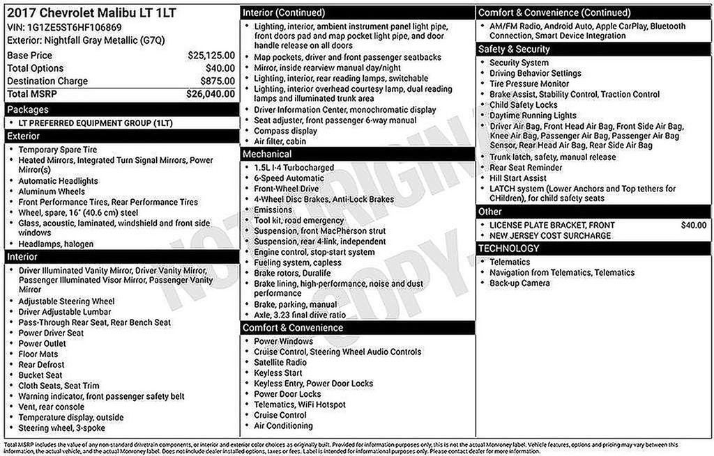Nightfall Gray Metallic 2017 Chevrolet Malibu LT 1LT FWD 6-Speed Automatic 1.5L DOHC