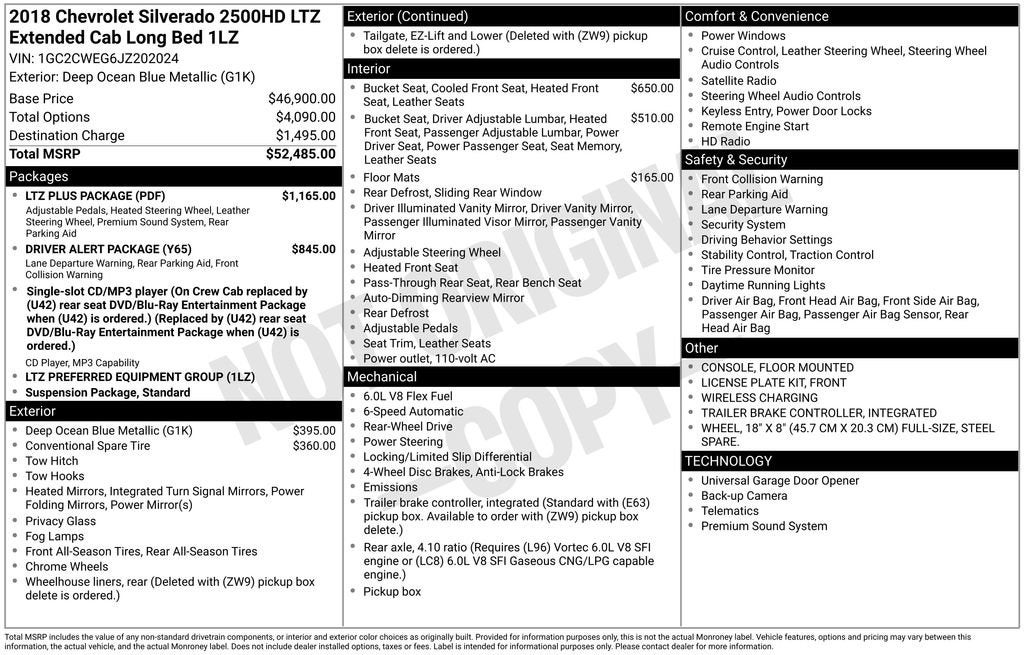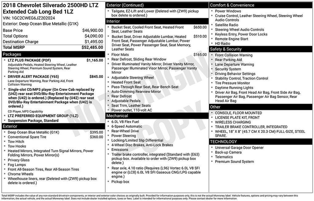 Deep Ocean Blue Metallic 2018 Chevrolet Silverado 2500HD LTZ RWD 6-Speed Automatic HD Electronic with Overdrive 6.0L 8-Cylinder SFI Flex Fuel OHV