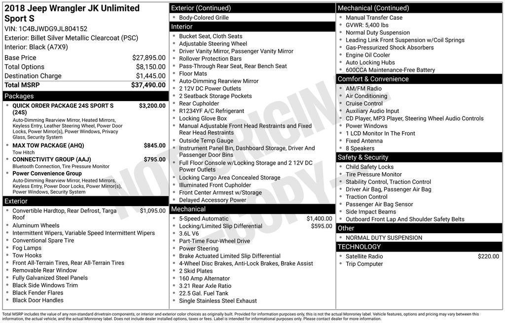 CarBravo 2018 Jeep Wrangler JK Unlimited Sport S 4x4