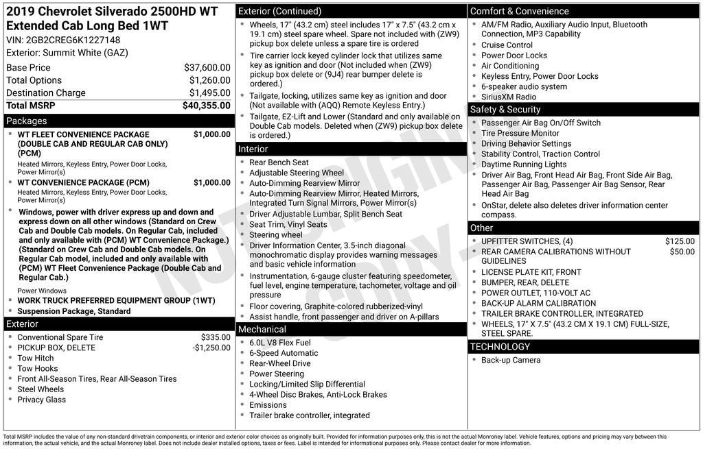 CarBravo 2019 Chevrolet Silverado 2500 HD Work Truck