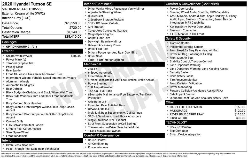 CarBravo 2020 Hyundai Tucson SE