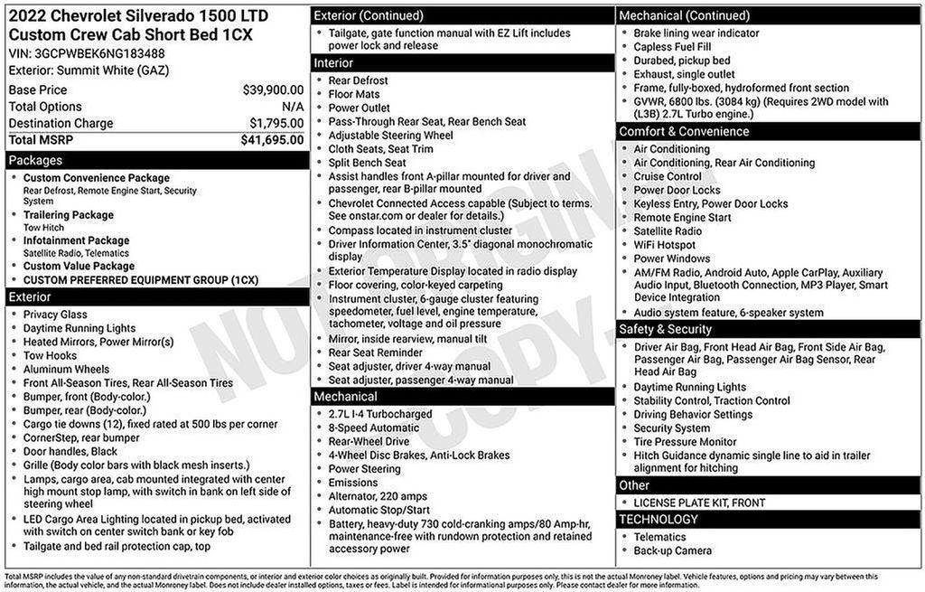 Summit White 2022 Chevrolet Silverado 1500 LTD Custom RWD 8-Speed Automatic 2.7L Turbo