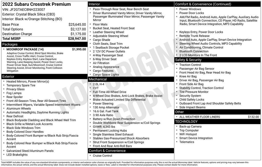 CarBravo 2022 Subaru Crosstrek Premium